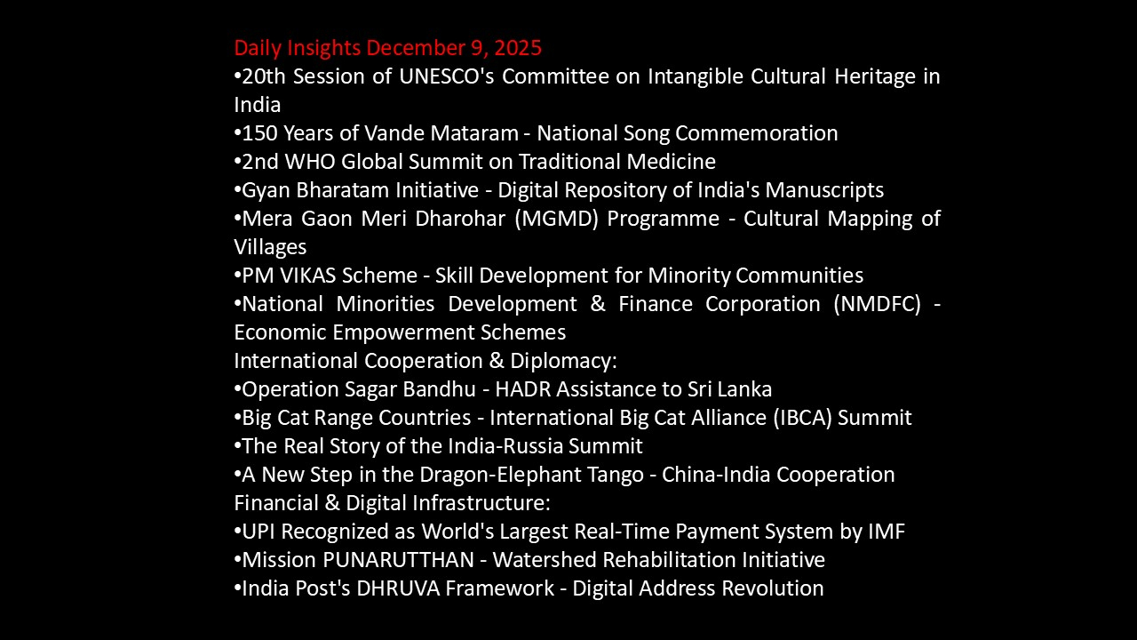The 20th Session of UNESCO’s Intergovernmental Committee for Safeguarding Intangible Cultural Heritage (20 COM) commenced on December 8, 2025, at the Red Fort, New Delhi, running till December 13, 2025.