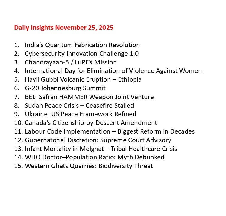 - India becomes one of the first nations globally with a dedicated National Quantum Mission, reflecting technological sovereignty and Atmanirbhar Bharat vision.