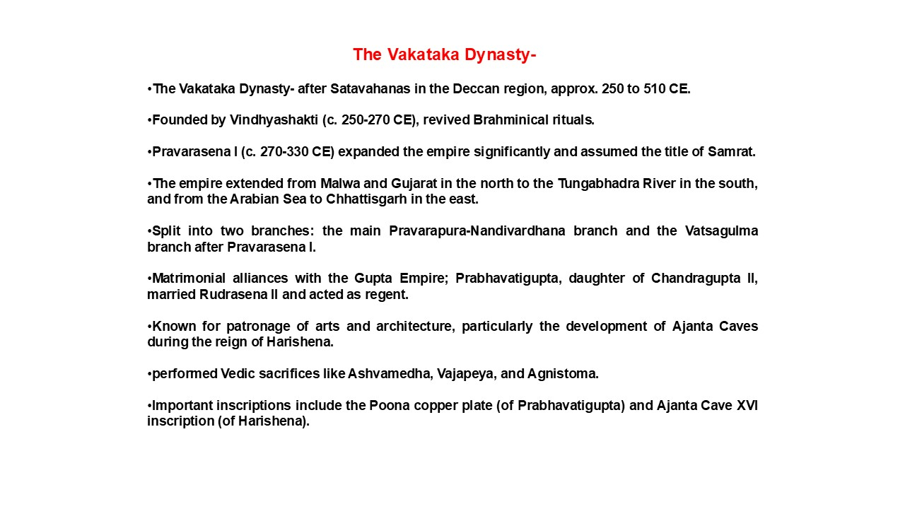 Explanation: Following the Vakataka dynasty’s collapse after Harisena’s death, the Chalukya dynasty emerged as the dominant Deccan power and had absorbed most former Vakataka territories by 550 CE, establishing a new era of Deccan political history.