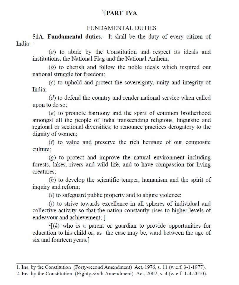 1976: 42nd Amendment added Part IVA with ten Fundamental Duties following the Internal Emergency