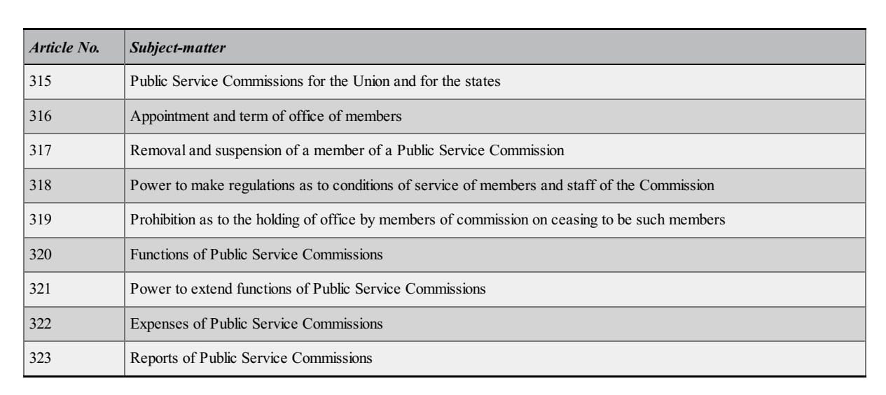 Article 315: Mandates establishment of Public Service Commission for the Union and for each State.