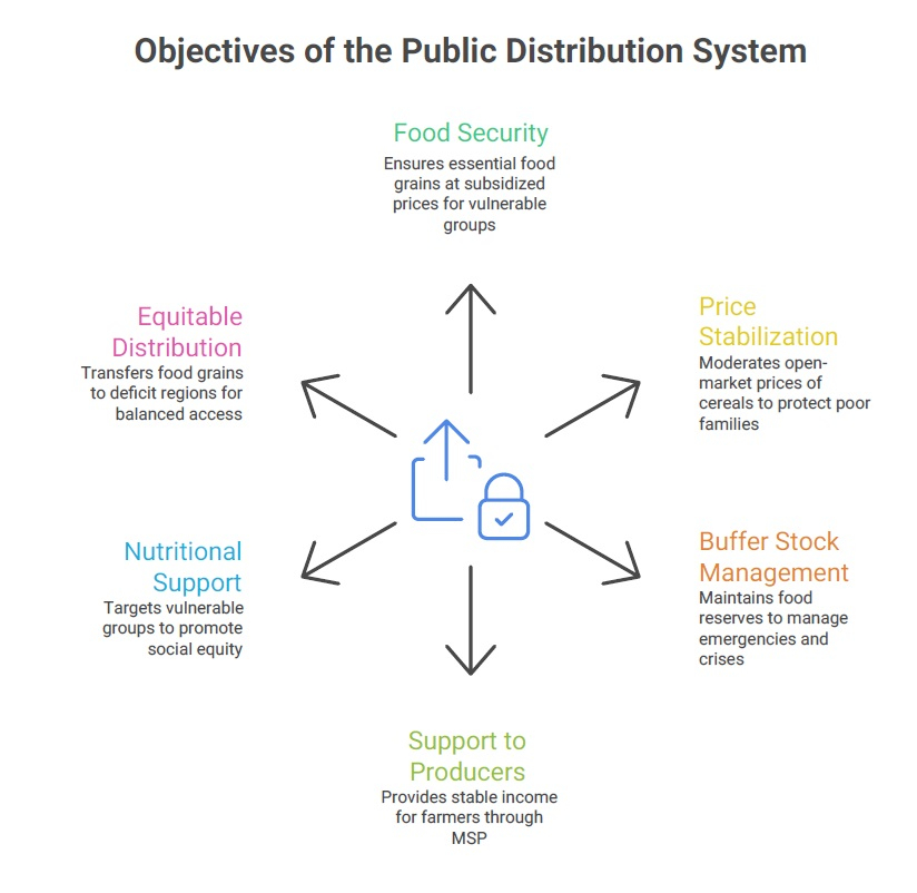 The PDS operates with multiple interlinked objectives aimed at comprehensive food and nutritional security: