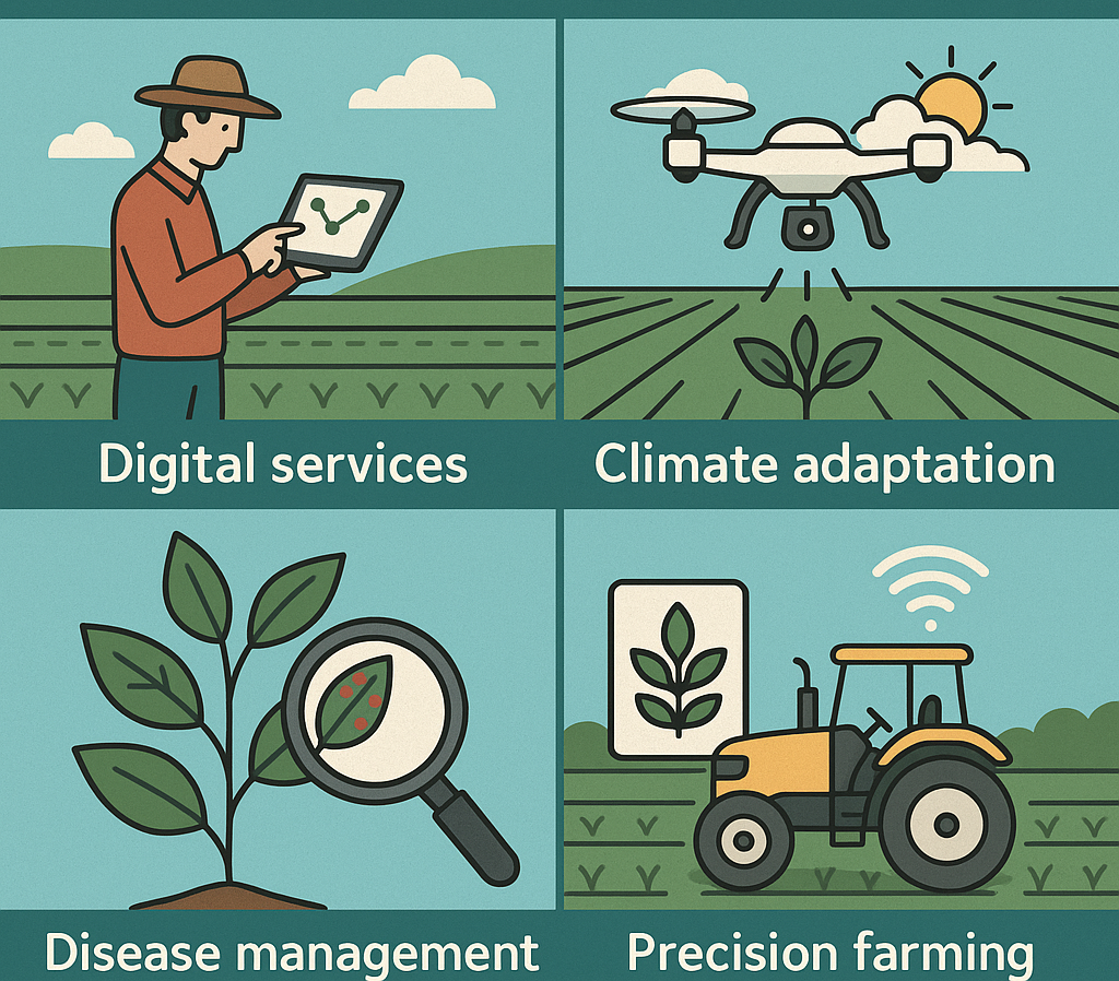 Promote technologies supporting integrated pest control, conservation agriculture, agroforestry, and climate-resilient farming systems, balancing productivity with environmental conservation and social inclusion.